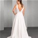Ausdrucksstarker Jacquard unterstreicht den figurfreundlichen Schnitt dieses umwerfenden Brautkleides. Eine breite Passe in der Taille betont das Top mit breiteren Trägern und tiefem Rücken, der weite Wickelrock mit Seitentaschen und Kurzschleppe bildet den perfekten Abschluss.