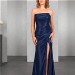 Raffinierte Drapierungen setzen das schmale Kleid mit geradem Ausschnitt aus matt glänzendem Jersey in der Farbe Nachtblau gekonnt in Szene. Der hohe Schlitz sorgt für Bewegungsfreiheit und das gewisse Etwas.